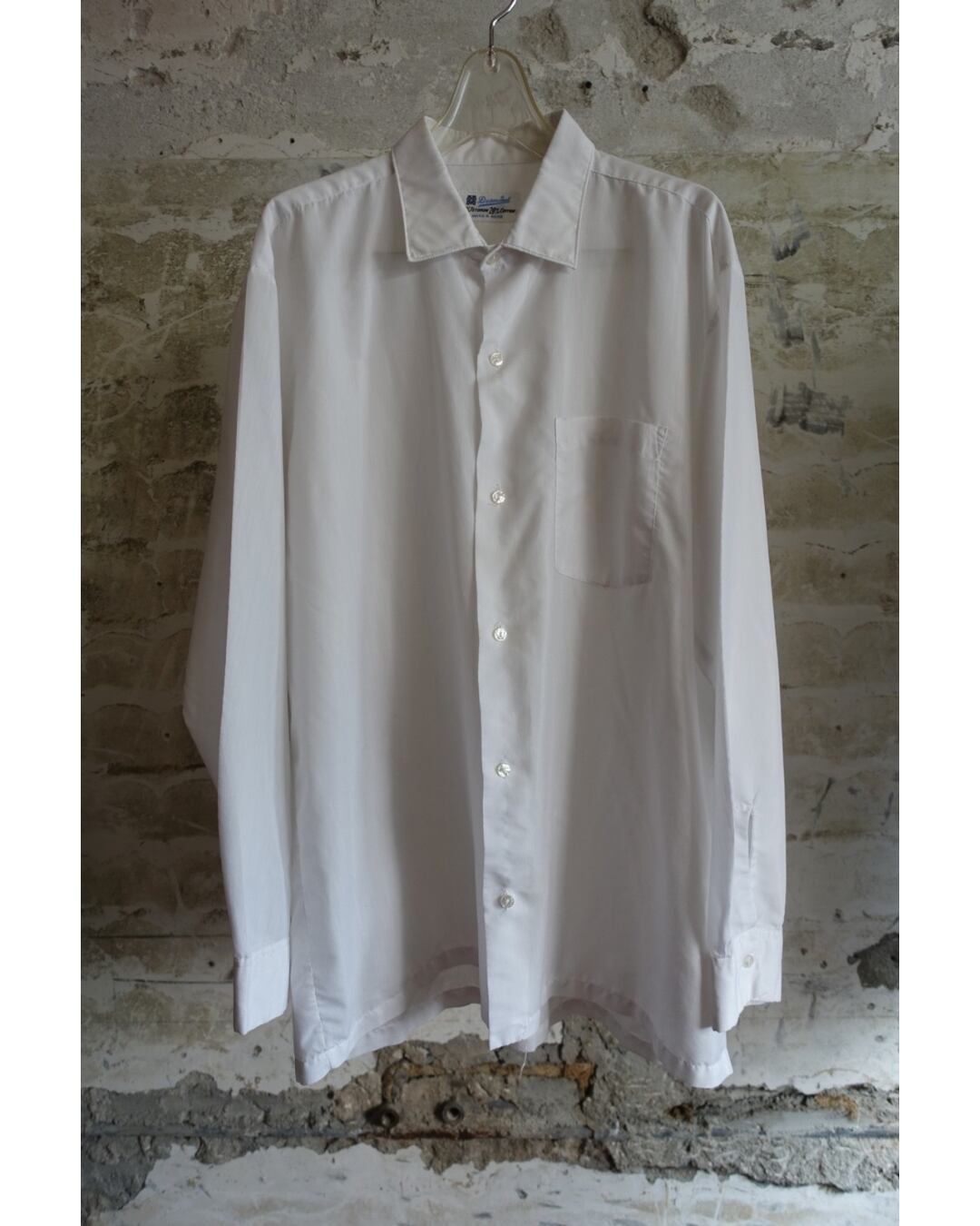 テトロンは、東レと帝人が共同で開発したポリエステル繊維の商標名。一般的にはポリエステルという名称で知られていますが、テトロンは特に高機能な産業用資材(漁網やタイヤコード、シートベルト)や、東レと帝人が製造するポリエステル製品に使われることが多いです。でお馴染みの素材です。わざわざ古着屋で白シャツ?って思ったそこのあなた、こんなに形も綺麗(あんまり伝わらず)で状態もすごくよくどんなシーンにも合うなんてズルい台詞が似合うシャツ、なんか置いてなさそうなお店がセレクトしたモノですし、いいに決まってます。わざわざ足を運んで、お店で見てくださいネ〜